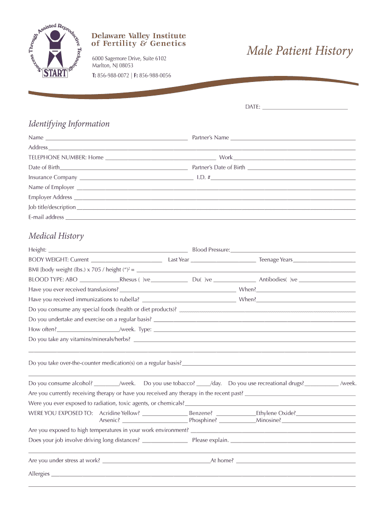 Get the free NV0563 Male Patient History Form v1 - Delaware Valley Genetics