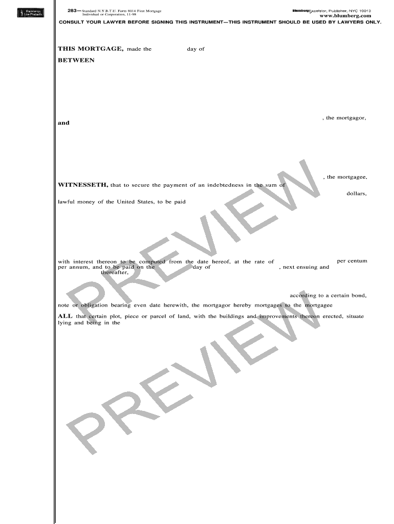 The New York Standard First Mortgage Form 8014 is a legal document used by borrowers to secure a mortgage on real property in New York. It outlines terms for transferring property interest as loan security.