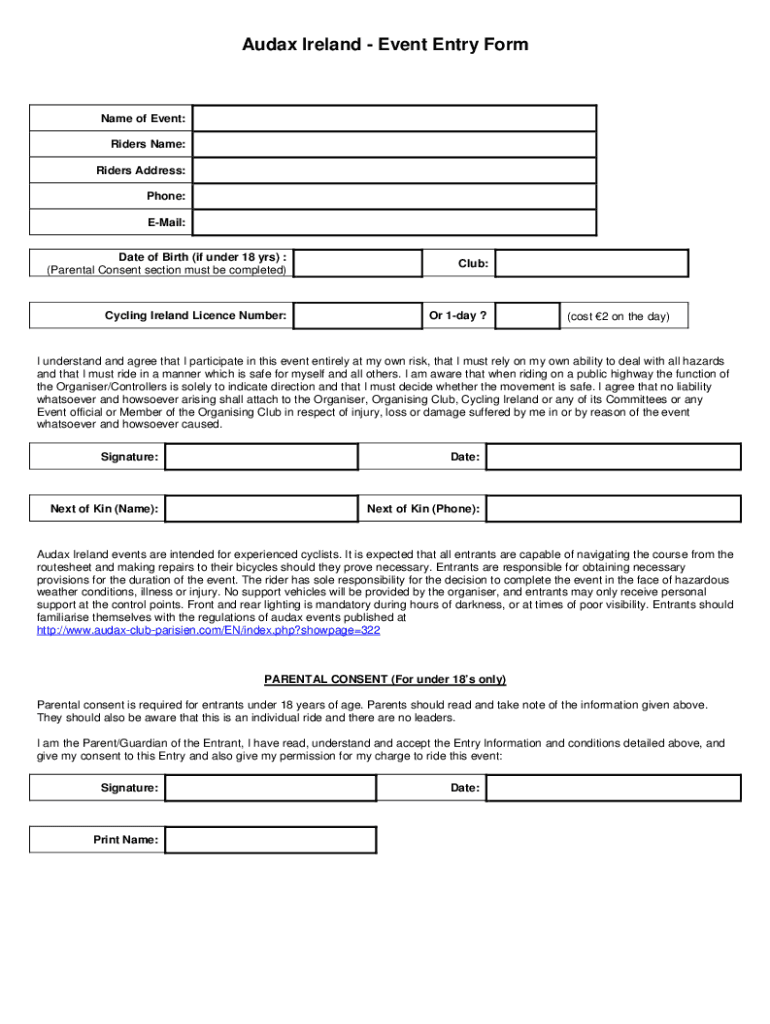 Get the free Audax Ireland - Event Entry Form (send to event Organiser)