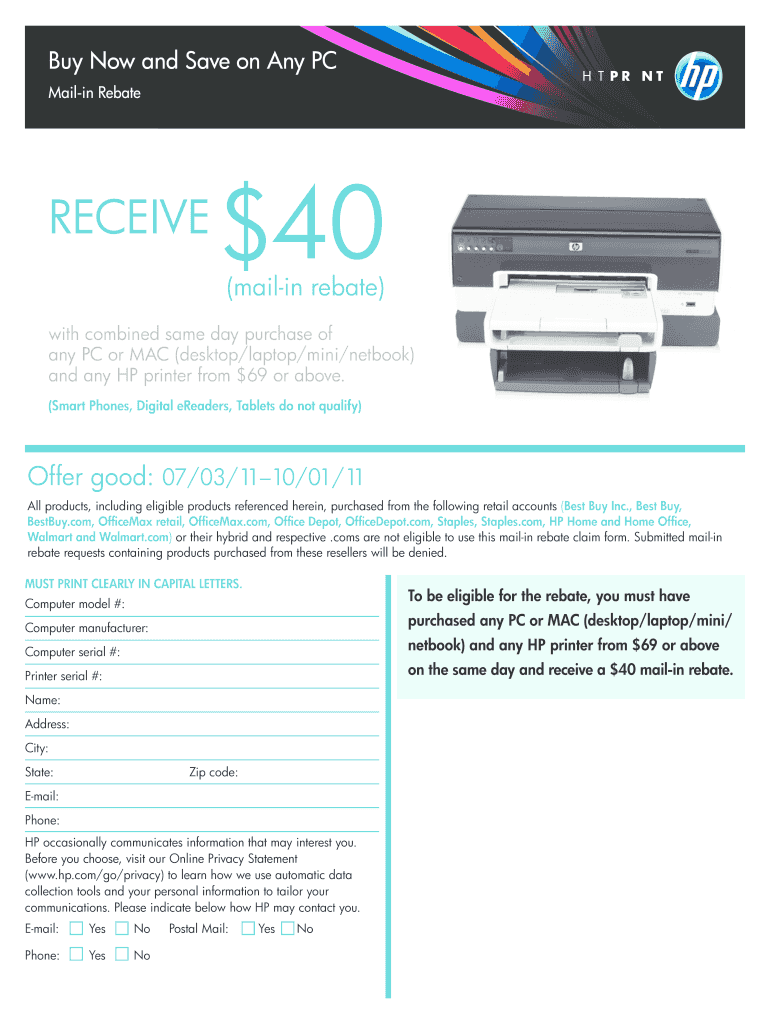 Get the free Buy Now and Save on Any PC - Mail-in Rebate - Hewlett Packard