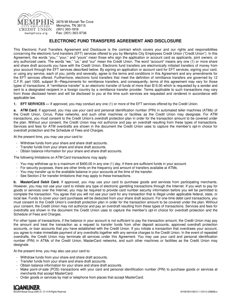 Get the free Electronic fund transfers agreement and disclosure - Memphis City ... - memphiscu