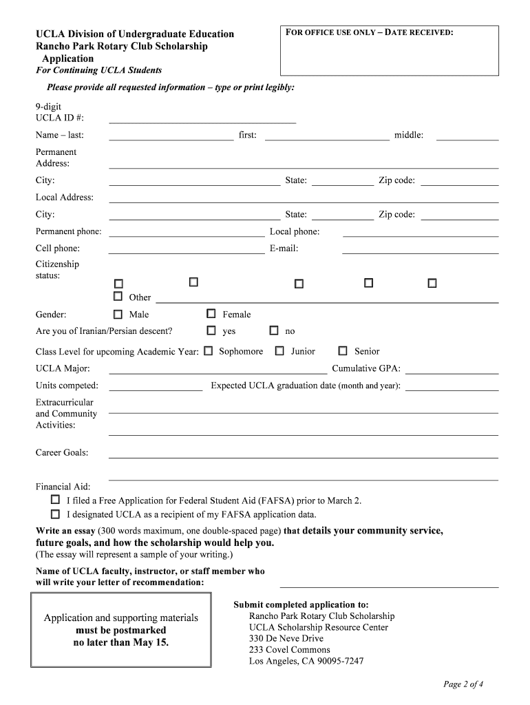UCLA Division of Undergraduate Education Rancho Park Rotary Club Scholarship Application For Continuing UCLA Students UCLA is pleased to announce the Rancho Park Rotary Club Scholarship, a donor funded