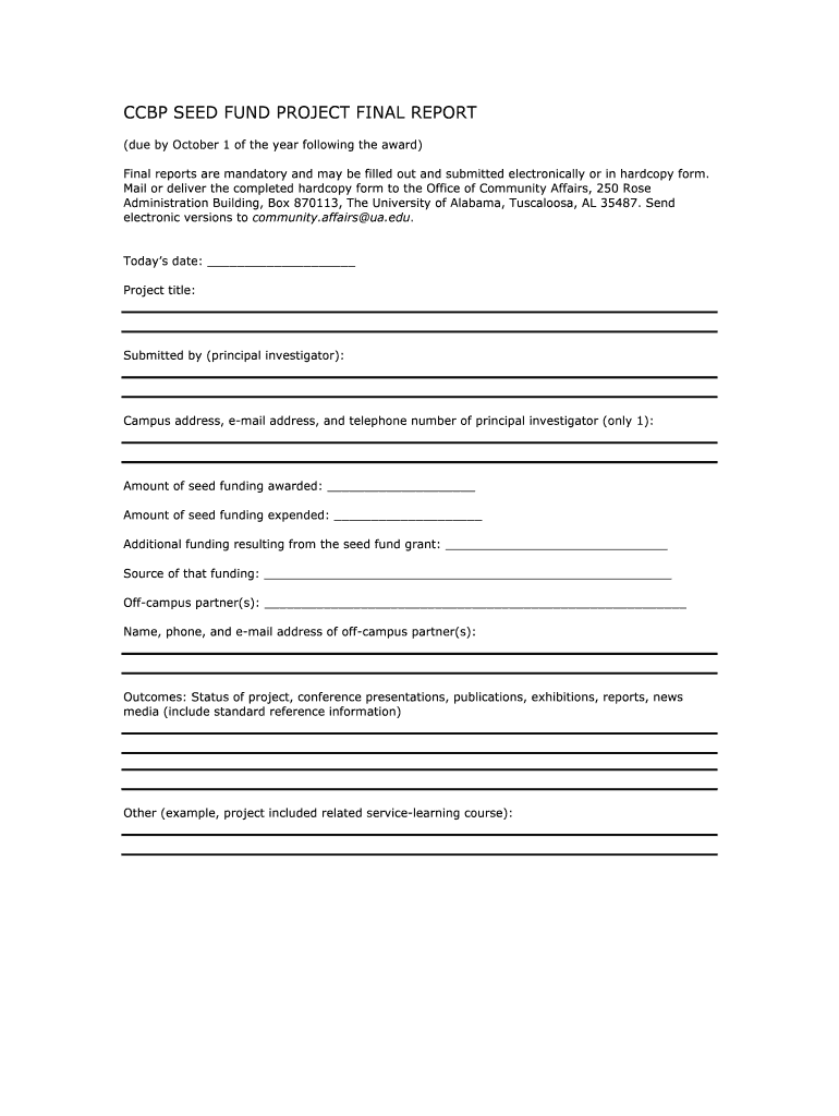 Get the free BCCBPb SEED FUND FINAL REPORT - University of Alabama - ccbp ua