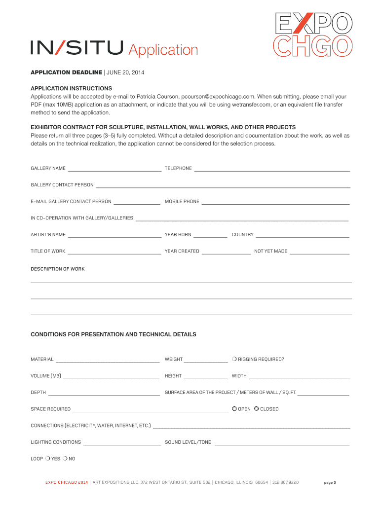 Application FIRST APPLICATION DEADLINE JUNE 20, 2014 1 Overview and Important Dates 2 General Terms 35 Application Form for IN×SITU EXPO CHICAGO×2014 Exhibitors As an exhibitor in this year's exposition,