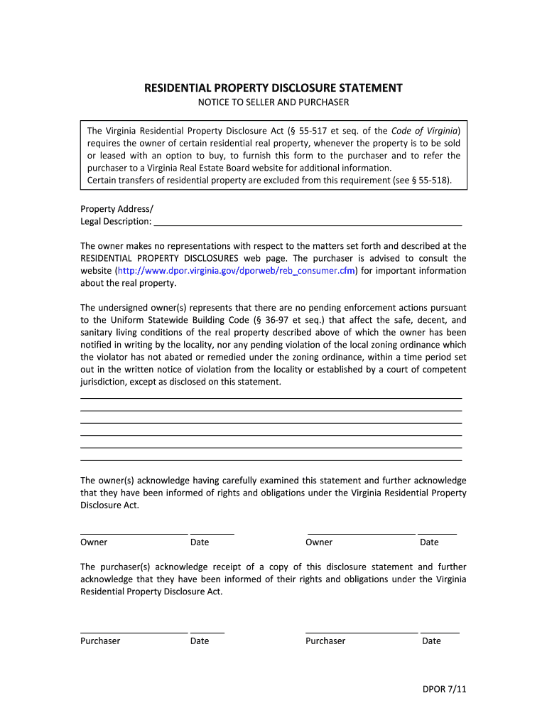Who Needs the Virginia Residential Property Disclosure Statement?