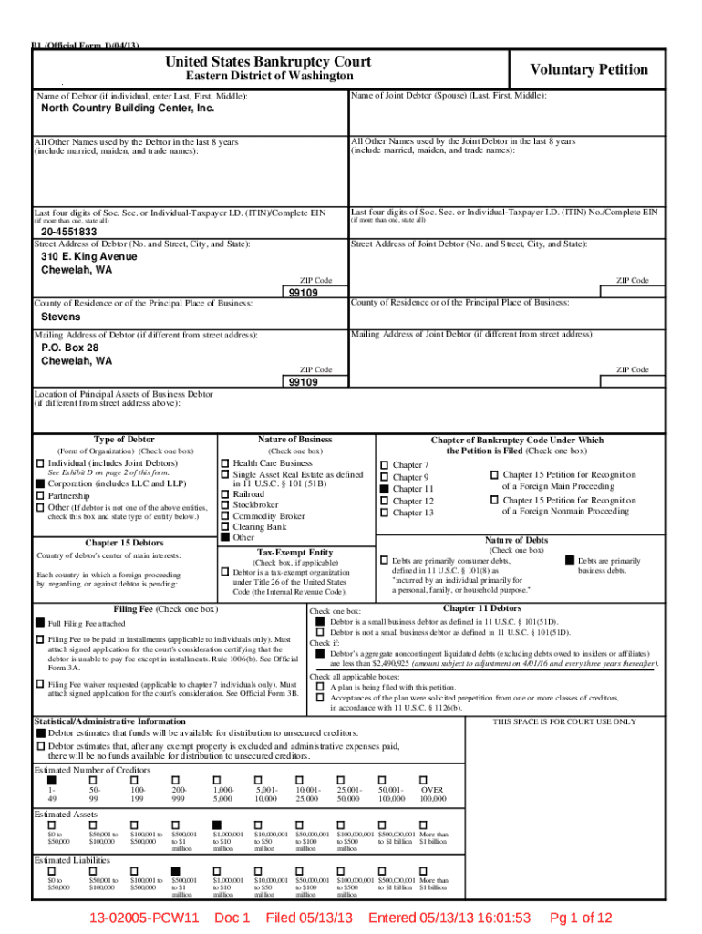 In the Eastern District of Washington, the US Bankruptcy Voluntary Petition can be submitted through various methods: