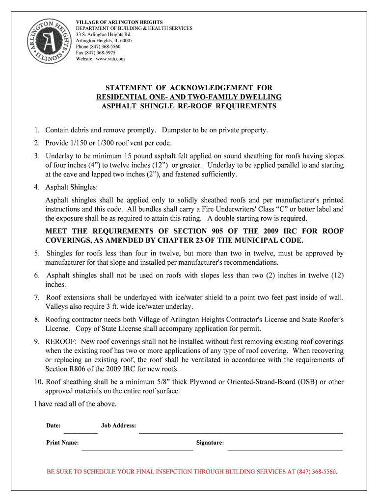 Homeowners planning asphalt shingle re-roofing projects in Arlington Heights are the primary audience for this form. Additionally, contractors and roofing professionals working in the area must also file this document.