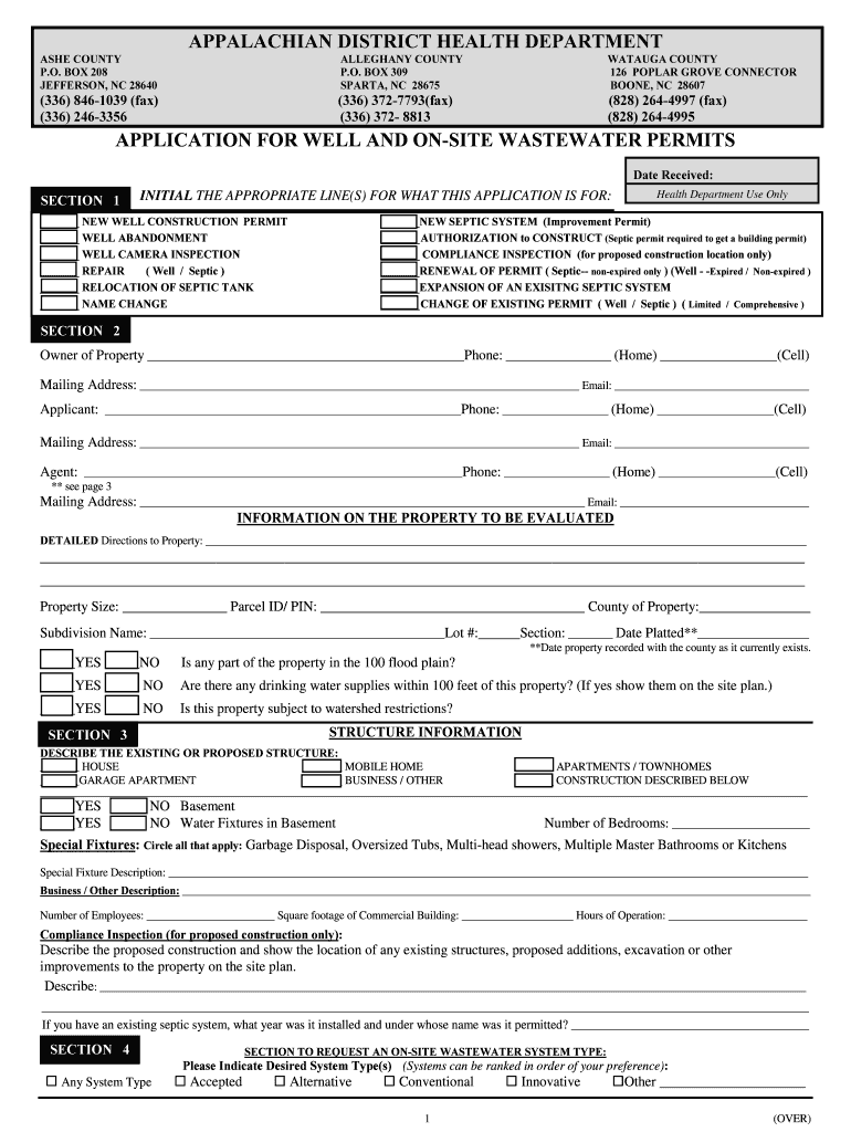 Field-by-Field Instructions for the Well and Septic Permit Application