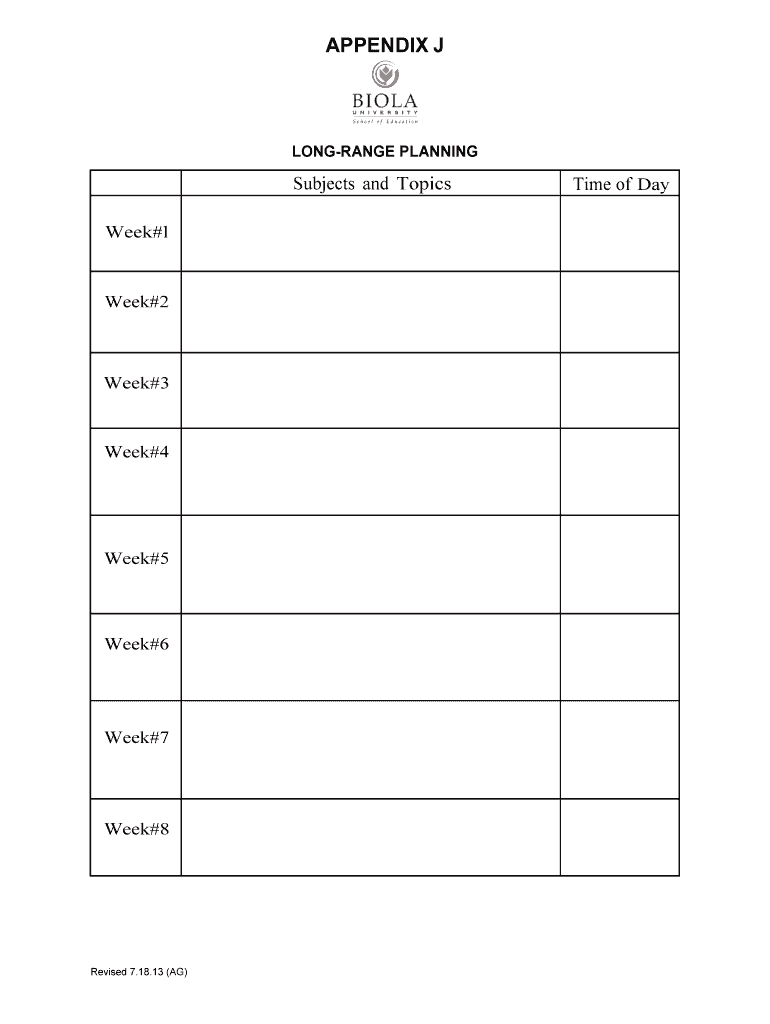 Get the free Appendix JLong Range Planning Sheet71813doc - education biola