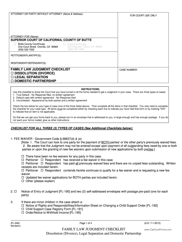 Get the free California Family Law Judgment Checklist