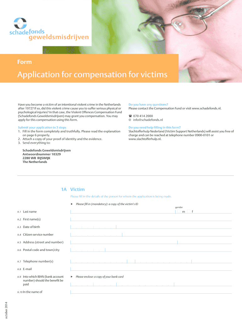 Form Application for compensation for victims Have you become a victim of an intentional violent crime in the Netherlands after 1972? If so, did this violent crime cause you to suffer serious physical