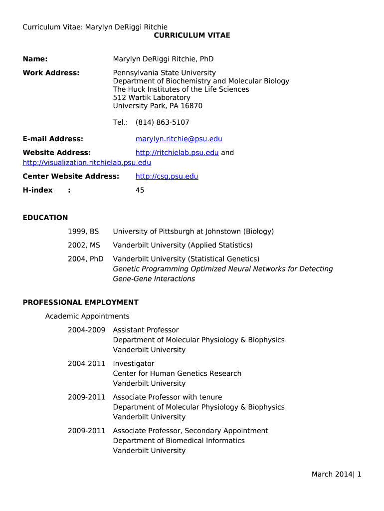 Fill out your geneticist marylyn d ritchie online with pdfFiller!