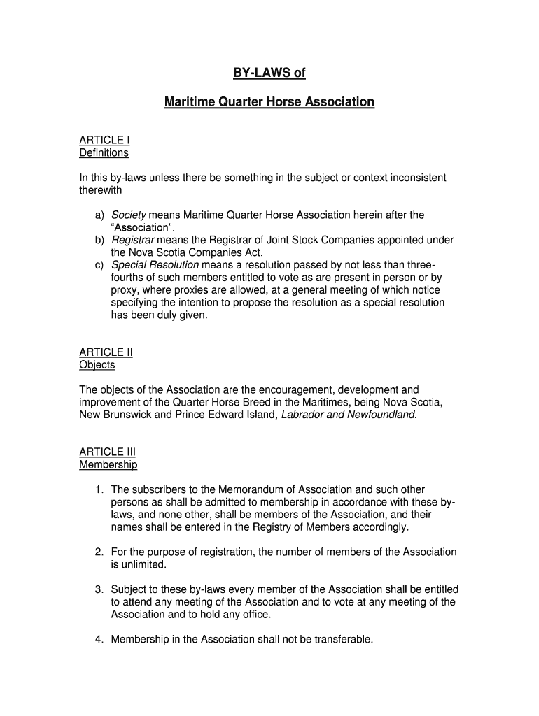 Get the free BY-LAWS of Maritime Quarter Horse Association