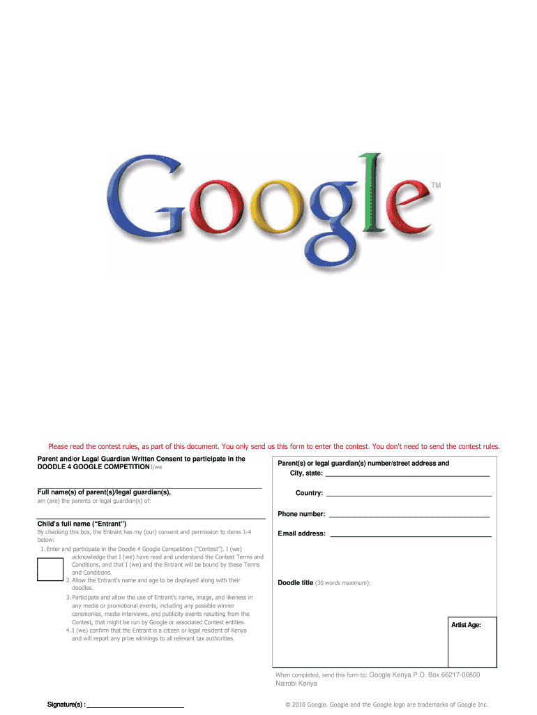 Get the free Parent Consent Form for Doodle 4 Google Competition