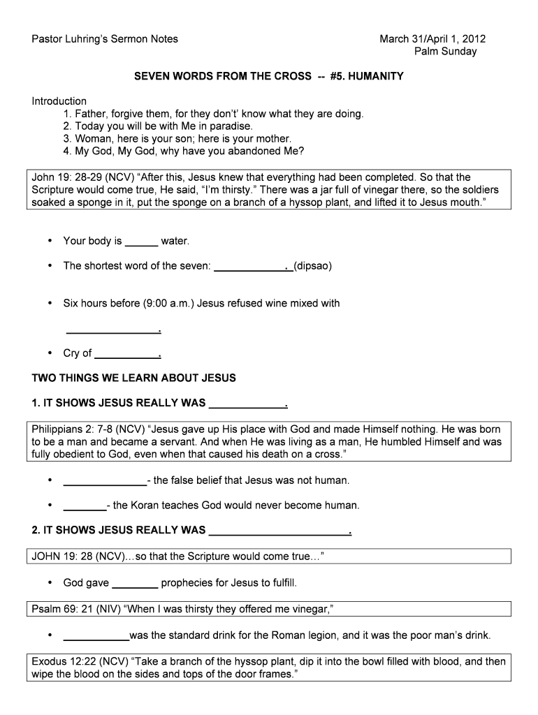 Fill out your pastor luhring39s sermon notes online with pdfFiller!