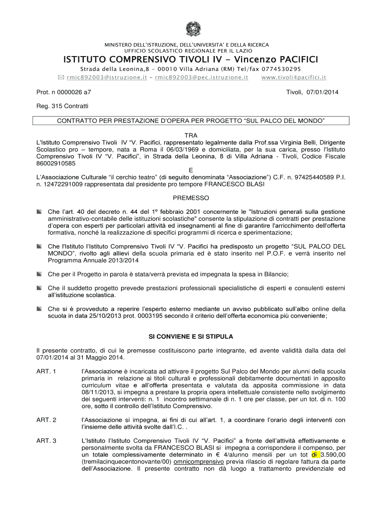 MINISTER DELLISTRUZIONE, DELLUNIVERSITA E DELLA RICE RCA OFFICE SCHOLASTIC REGIONAL PER IL RADIO INSTITUTE COMPRESSIVE TRIPOLI IV Vincenzo PACIFIC Strata Della Leonine,8 00010 Villa Adriana (RM) Tel×fax