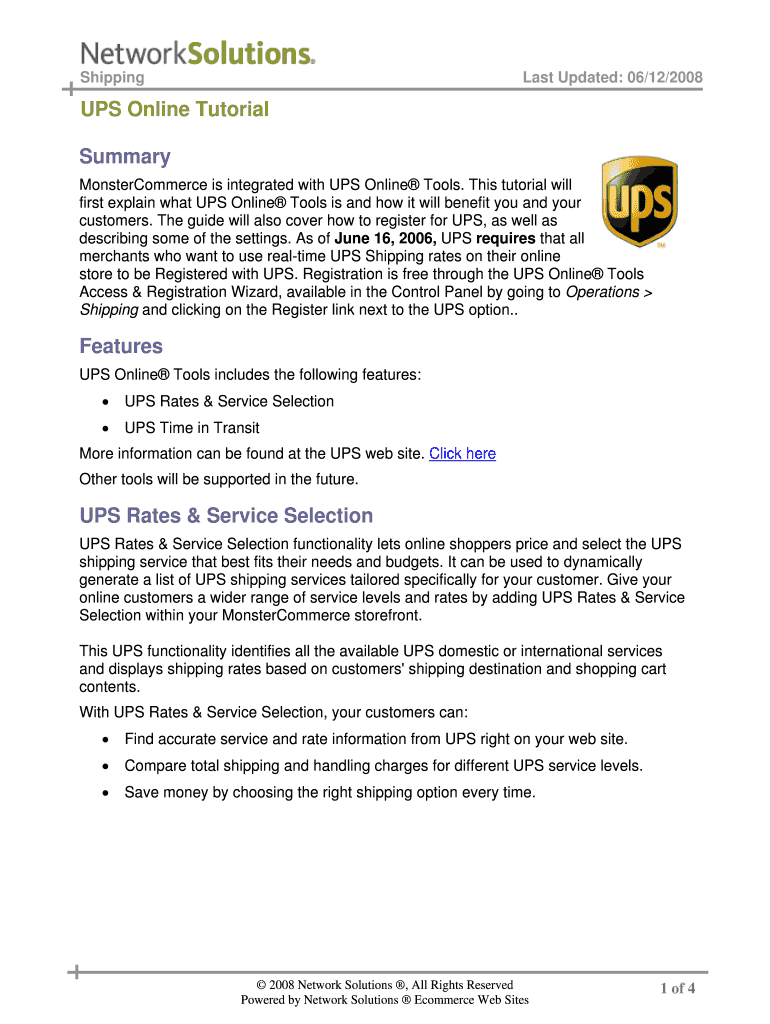 Get the free UPS Online Tutorial Summary Features UPS bb - Network Solutions