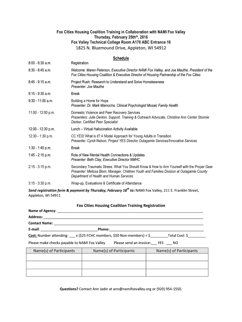 Fox Cities Housing Coalition Training in Collaboration with NAME Fox Valley Thursday, February 25thth, 2016 Fox Valley Technical College Room A170 ABC Entrance 16 1825×N.%Bluemound×Drive, ×Appleton,