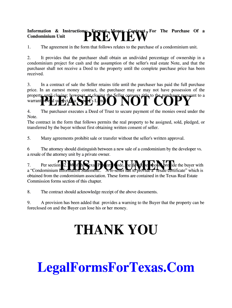 Key Features of the Earnest Money Contract for Condominium Purchase