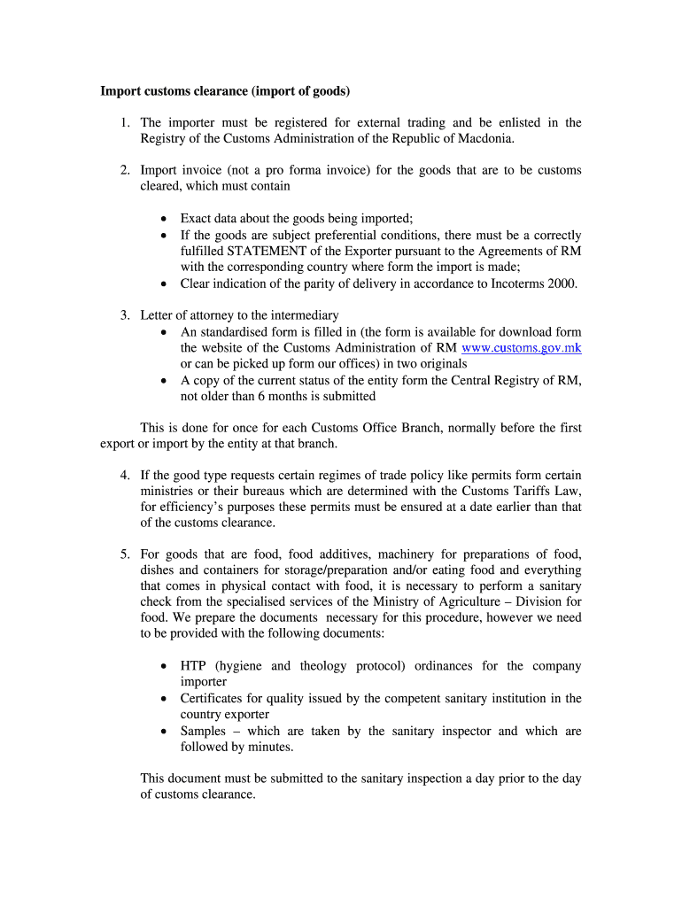 Get the free Import customs clearance (import of goods)