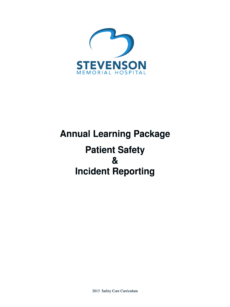 Annual Learning Package Patient Safety & Incident Reporting2013 Safety Core CurriculumPatient Safety & Incident Reporting Patient Safety, defined as the reduction and mitigation of unsafe acts within
