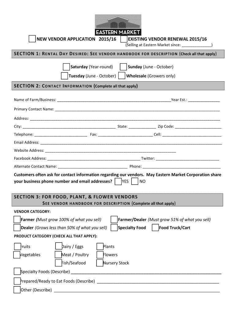 NEW VENDOR APPLICATION 2015×16 EXISTING VENDOR RENEWAL 2015×16