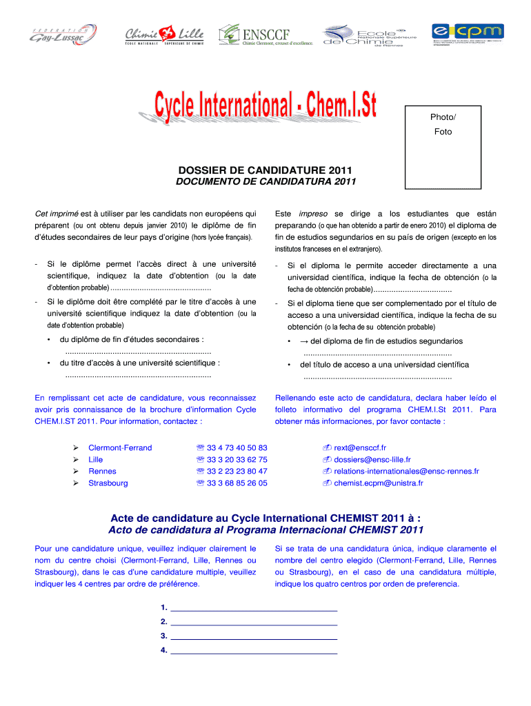 Obtenir le gratuit Candidature CHEMIST 2011 espagnol-Am LATINE - Ecole Nationale ...