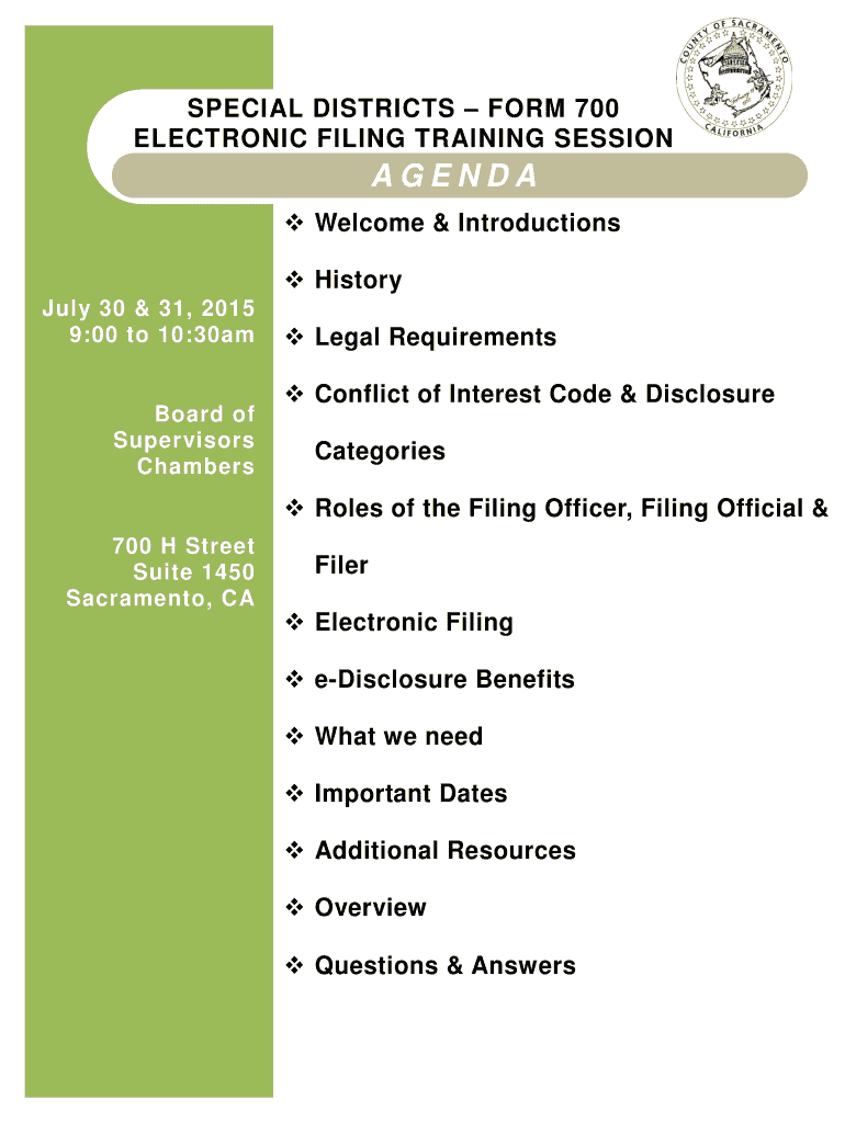 Get the free SPECIAL DISTRICTS FORM 700 ELECTRONIC FILING - form700 saccounty