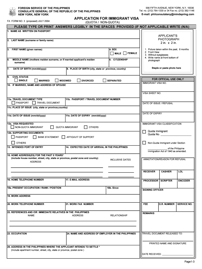 When filling out the Philippines Immigrant Visa Application Form, applicants must prepare a comprehensive set of documents. The required personal information includes:
