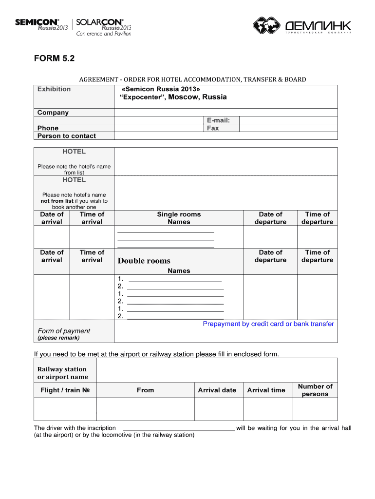 Get the free Hotel Booking Form - SEMICON Russia - semiconrussia