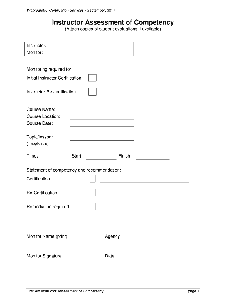 The WorkSafeBC First Aid Instructor Assessment of Competency is a teacher evaluation form used by organizations in British Columbia to assess the competence of first aid instructors.