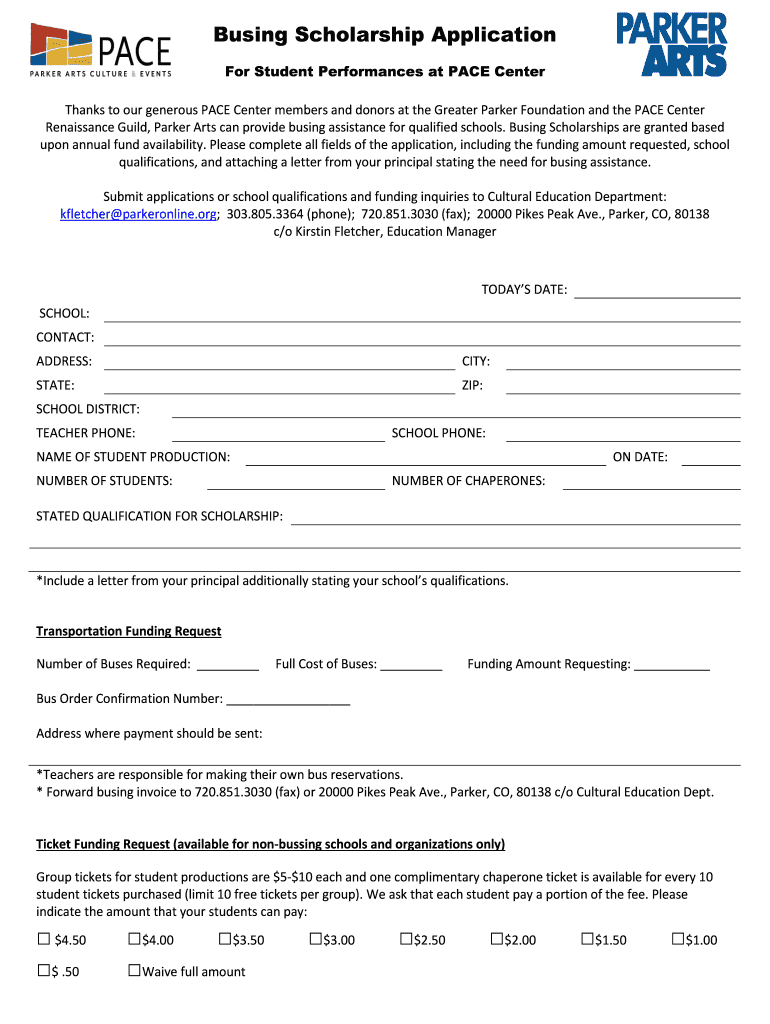 Get the free Busing Scholarship Application - Parker Arts - parkerarts