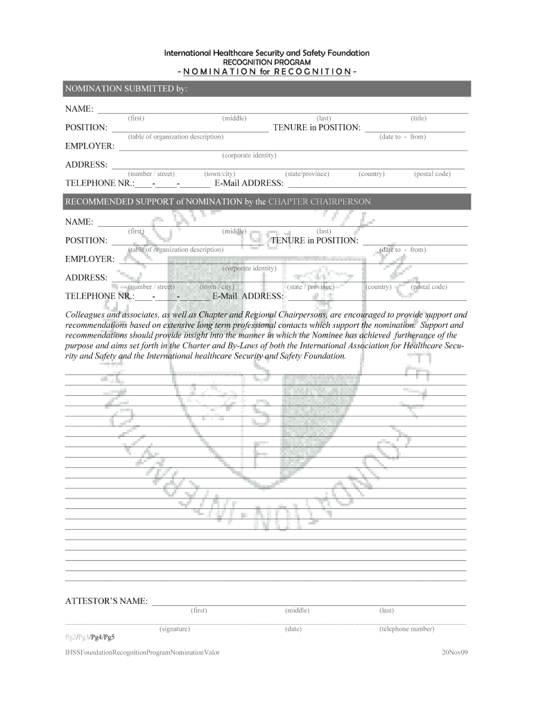 International Healthcare Security and Safety Foundation RECOGNITION PROGRAM N O M I N A T I O N for R E C O G N I T I O N The Foundation is established for the purpose of fostering and promoting the