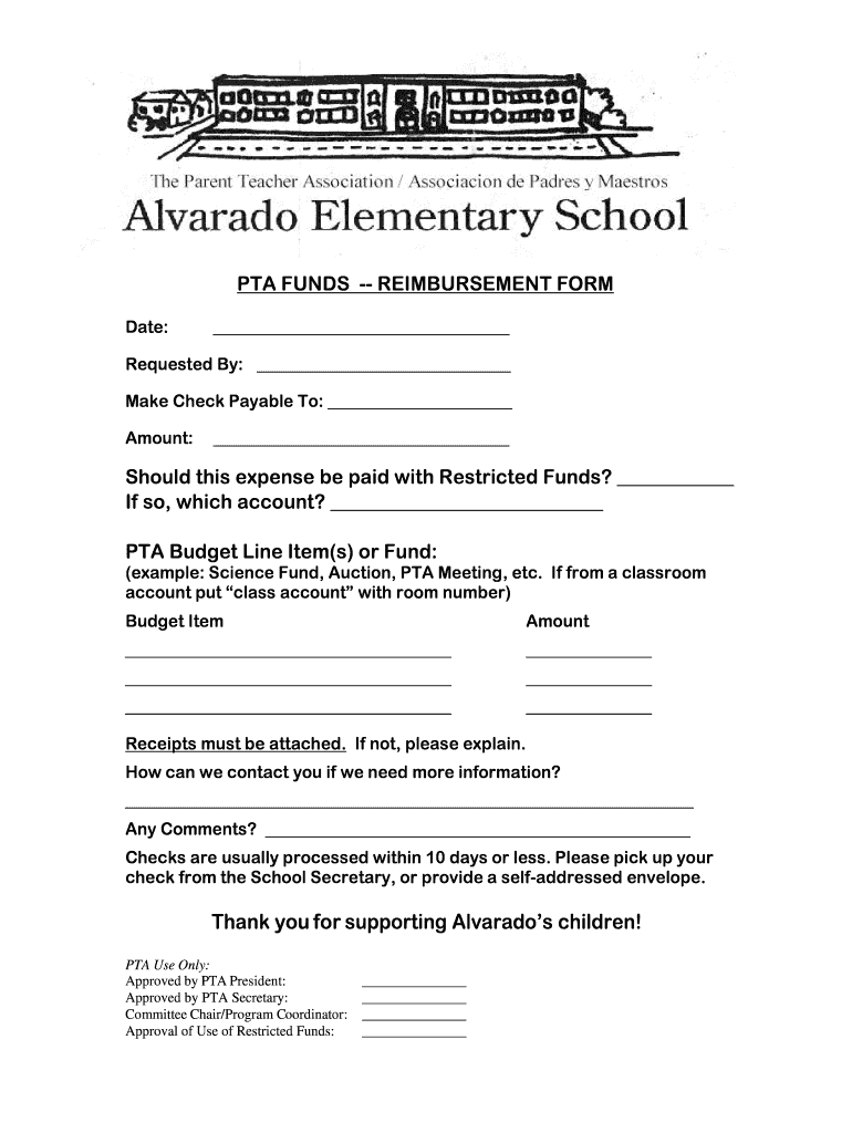 It is important to consult with your specific PTA or organization to determine if this particular form is required for reimbursement purposes. The eligibility criteria for reimbursement may vary depending on the organization's guidelines and policies.