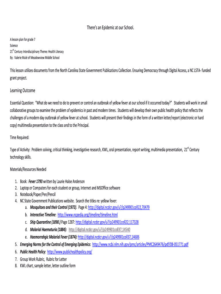 Get the free Theres an Epidemic at our School Learning Outcome - ncgovdocs