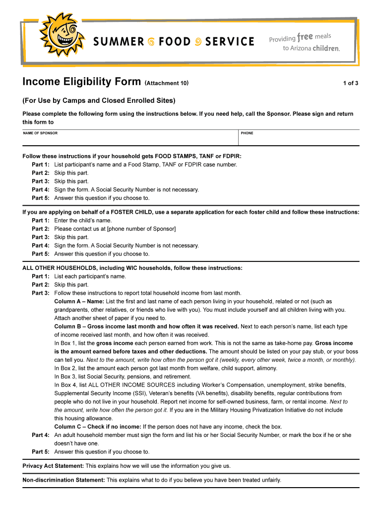Income Eligibility Form (Attachment 10× 1 of 3 (For Use by Camps and Closed Enrolled Sites) Please complete the following form using the instructions below. If you need help, call the Sponsor. Please