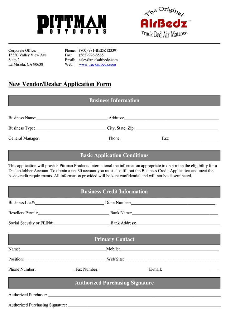 Get the free New VendorDealer Application bFormb - The Original Truck Airbedz