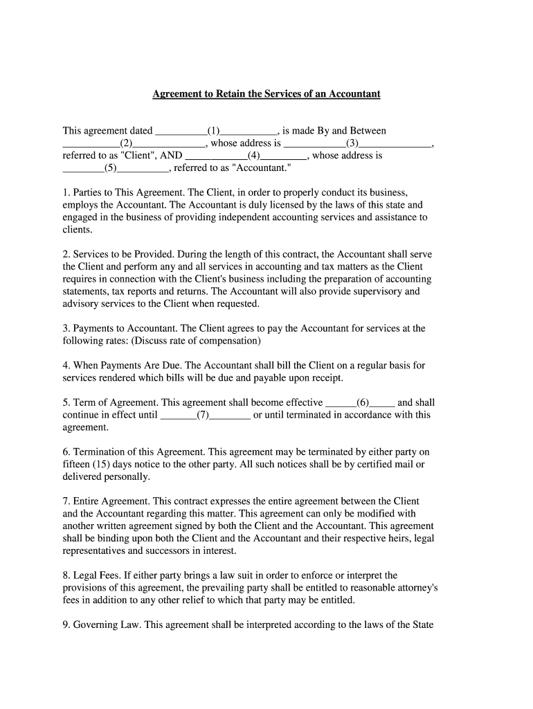 Get the free Accountant Service Retention Agreement