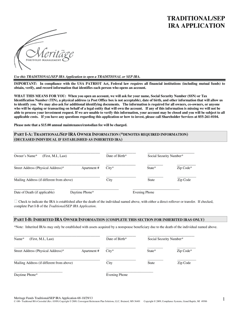 TRADITIONAL×SEP IRA APPLICATION Use this TRADITIONAL×SEP IRA Application to open a TRADITIONAL or SEP IRA. IMPORTANT: In compliance with the USA PATRIOT Act, Federal law requires all financial institutions