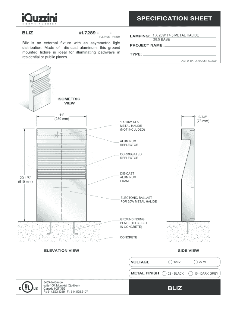SPECIFICATION SHEET LIZ #I.7289 VOLTAGE FINISH Liz is an external fixture with an asymmetric light distribution. Made of die-cast aluminum, this ground mounted fixture is ideal for illuminating pathways