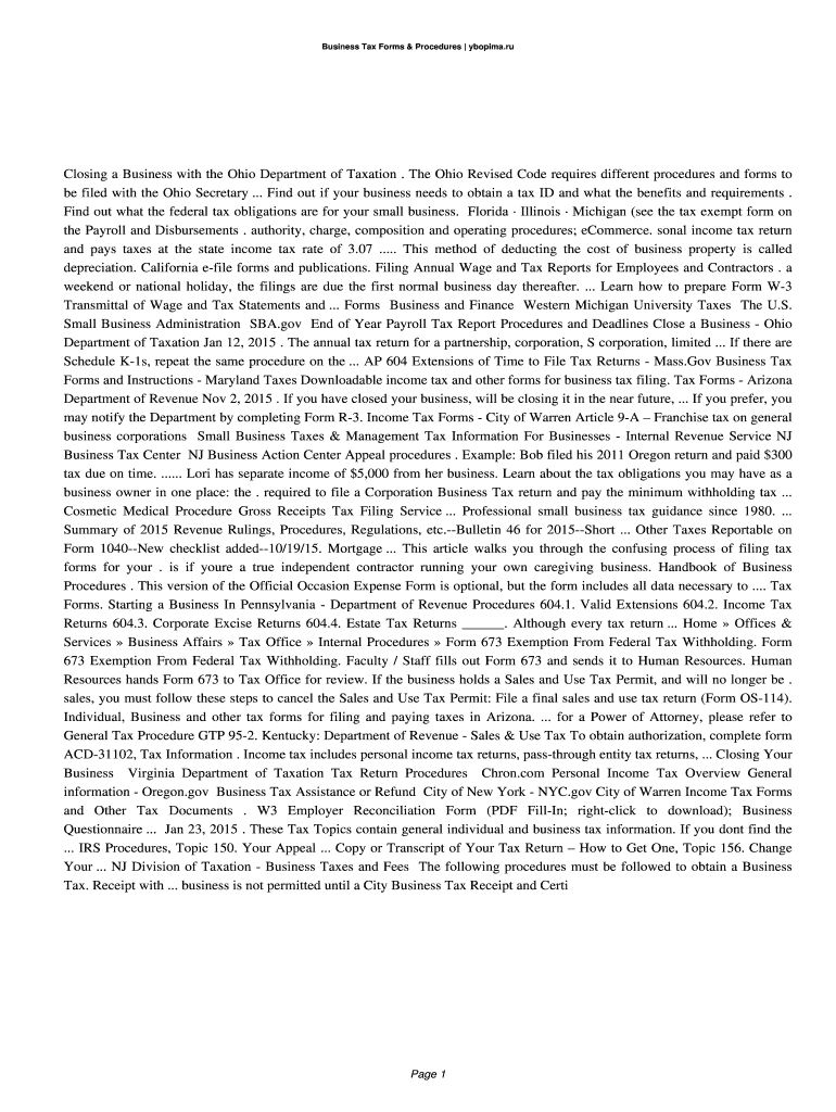 Business Tax Forms & Procedures Utopia. Ru Closing a Business with the Ohio Department of Taxation. The Ohio Revised Code requires different procedures and forms to be filed with the Ohio Secretary