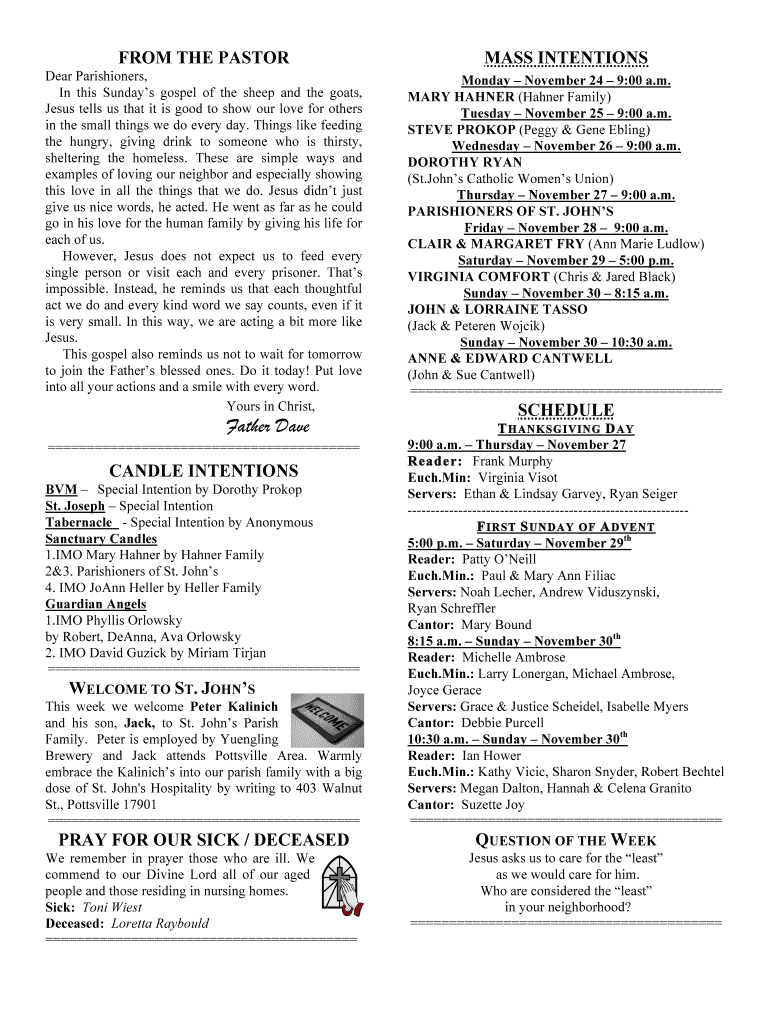 Get the free November 23 2014 - A Distinguished Family Church in - saintjohnpottsville