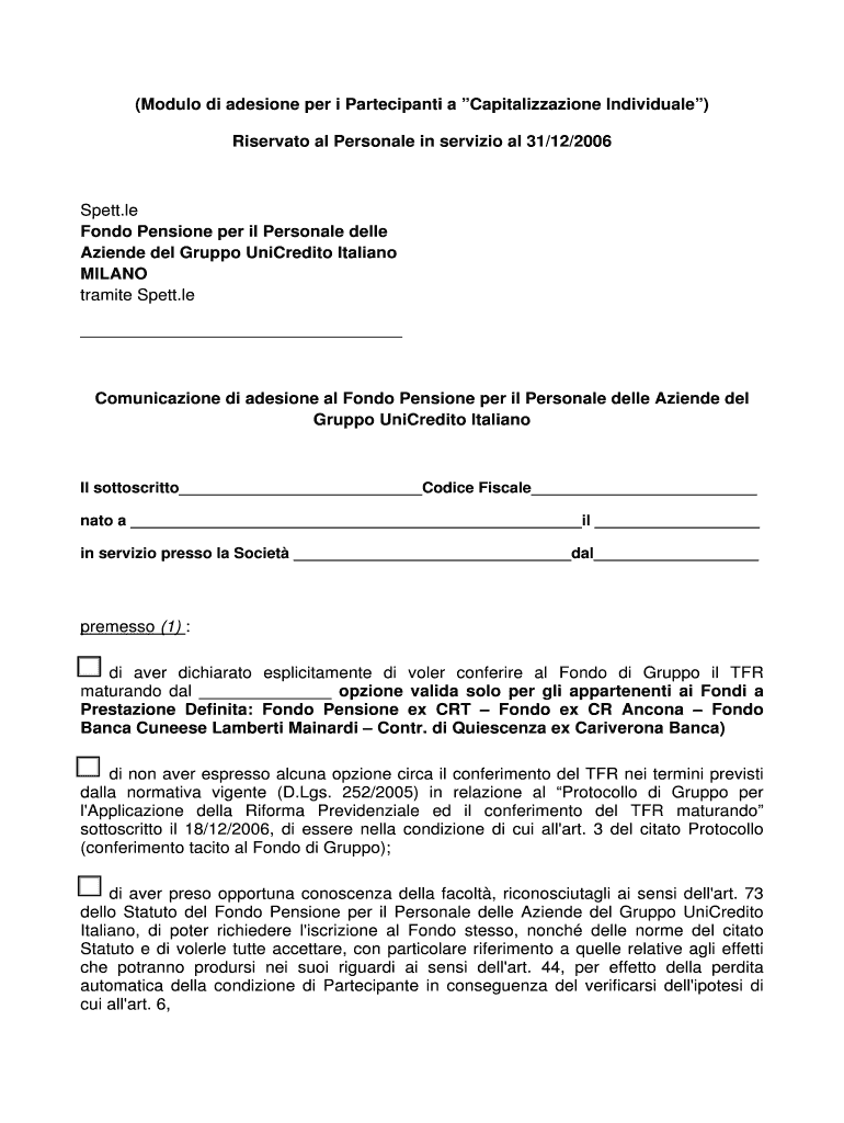 (Modulo DI adhesion per i Participants a Capitalization Individual) Reservation all Personal in Servillo all 31×12/2006 Spent. LE Fond Pension per IL Personal Dell Allende del Krupp UniCredito Italian