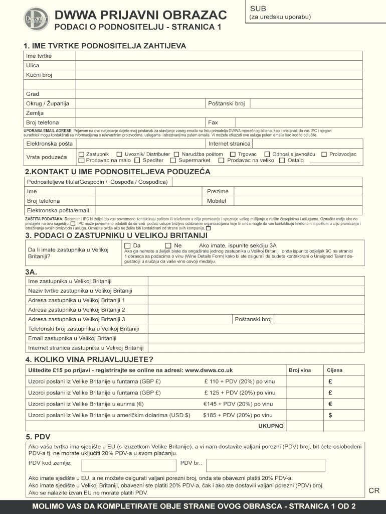 Get the free DWWA PRIJAVNI OBRAZAC SUB - decantermediaipcdigitalcouk - decanter media ipcdigital co