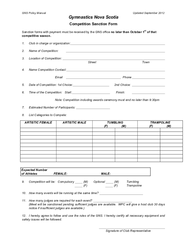 Competition Sanction Form