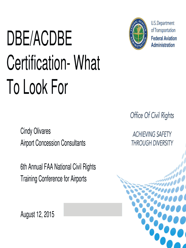 BE×ACRE Certification What To Look For Cindy Olivares Airport Concession Consultants 6th Annual FAA National Civil Rights Training Conference for Airports August 12, 2015Topics Definition of a BE×ACRE