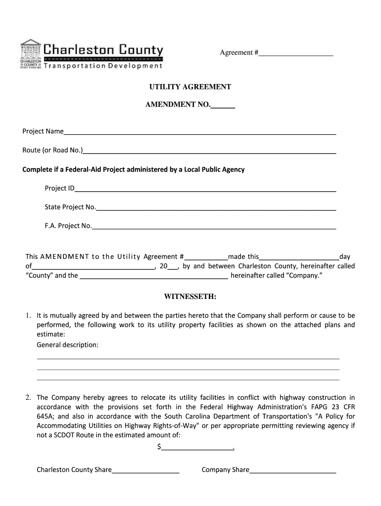 Editing utilityagreementblankform3086-a12-11doc - roads charlestoncounty online
