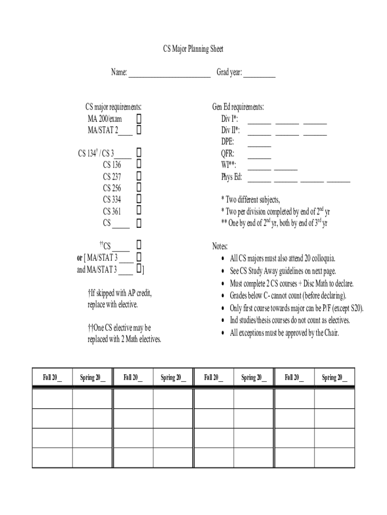Get the free CS Major Planning Sheet Name Grad year CS major - sysnet cs williams