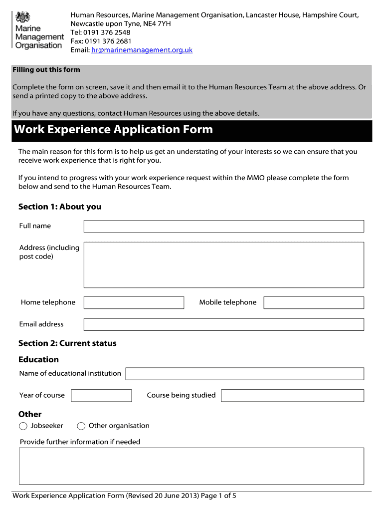 Get the free Work Experience Application bFormb - Govuk