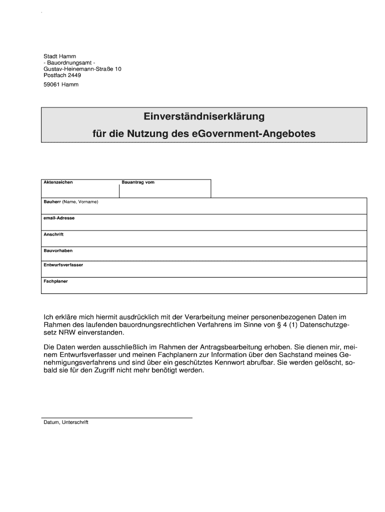 Holen Sie sich kostenlos Einverstndniserklrung fr die Nutzung des eGovernment - hamm